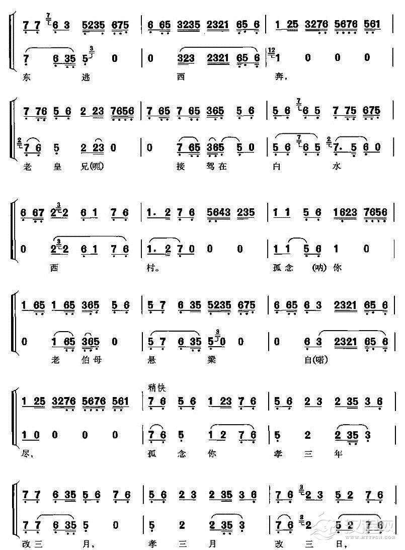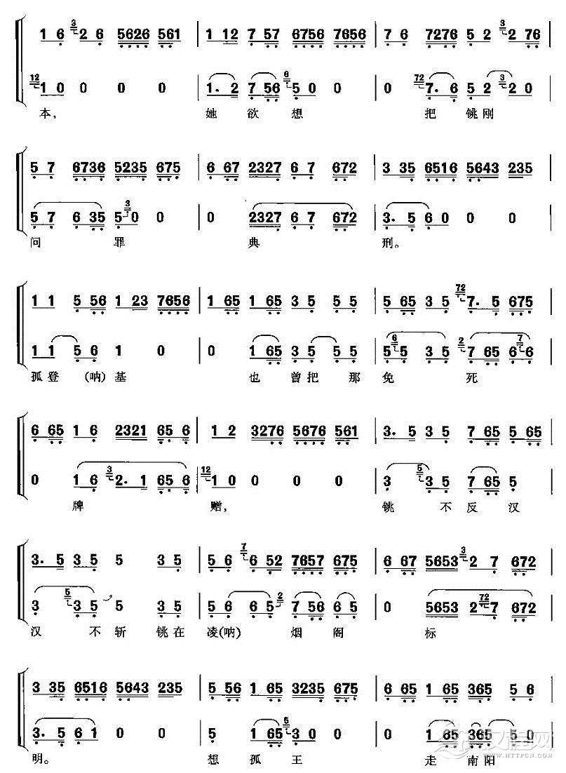 戏曲曲谱汝南得信喜过望(《灞陵桥》关羽唱段)