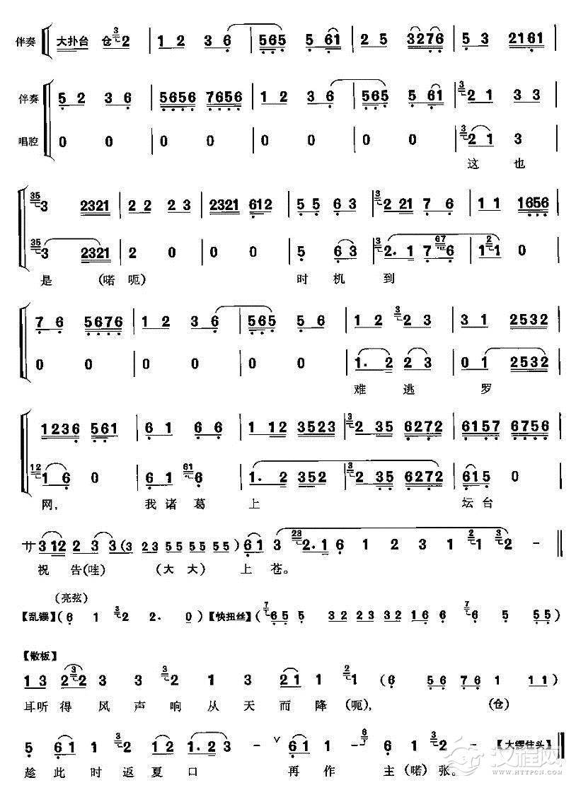 戏曲曲谱限三天造雕翎着般时候(《群英会》诸葛亮、鲁肃唱段)