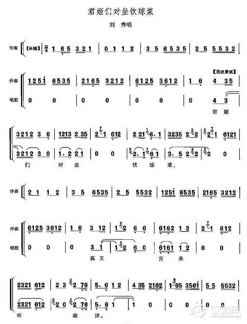 戏曲曲谱百姓们琼浆酒献上(《将相和》蔺相如唱段)
