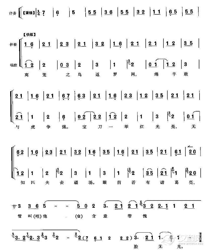 戏曲曲谱限三天造雕翎着般时候(《群英会》诸葛亮、鲁肃唱段)