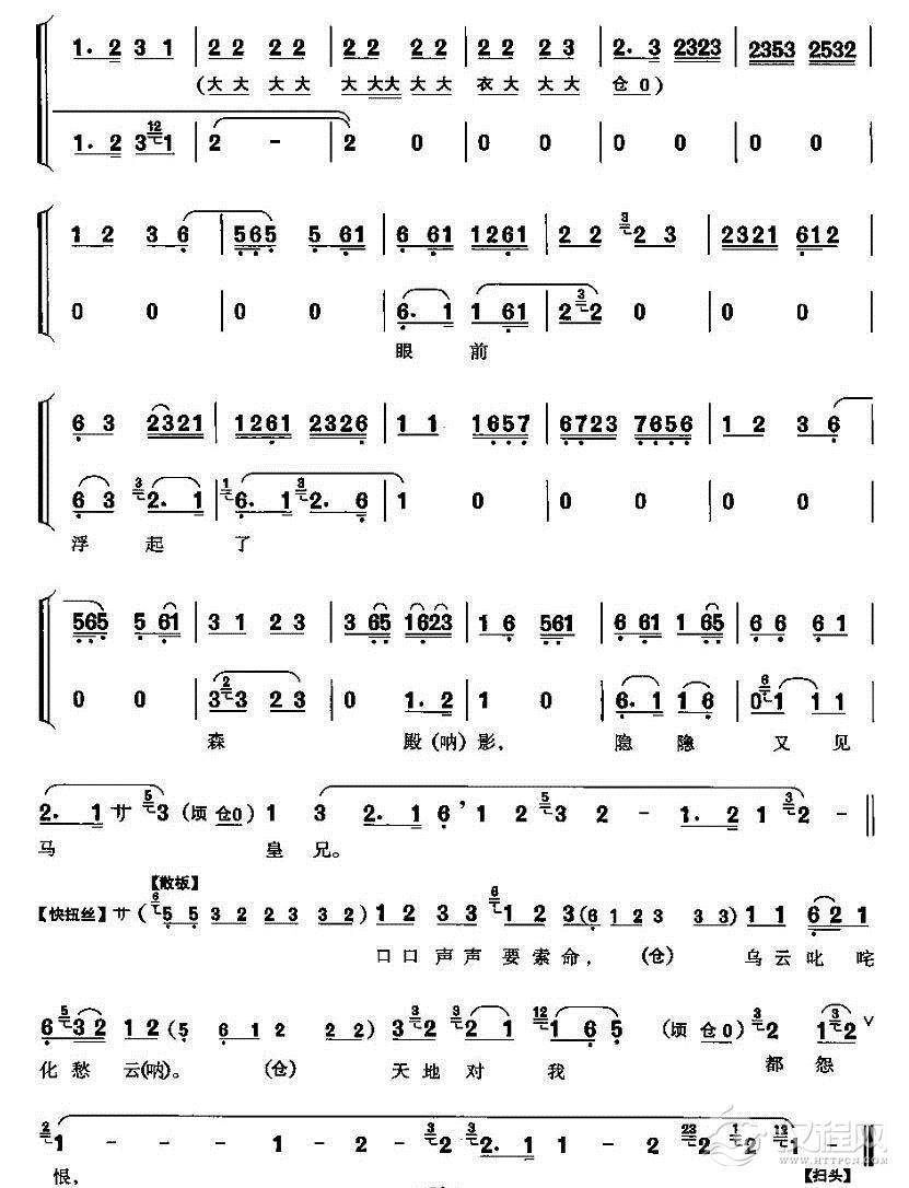 戏曲曲谱汝南得信喜过望(《灞陵桥》关羽唱段)