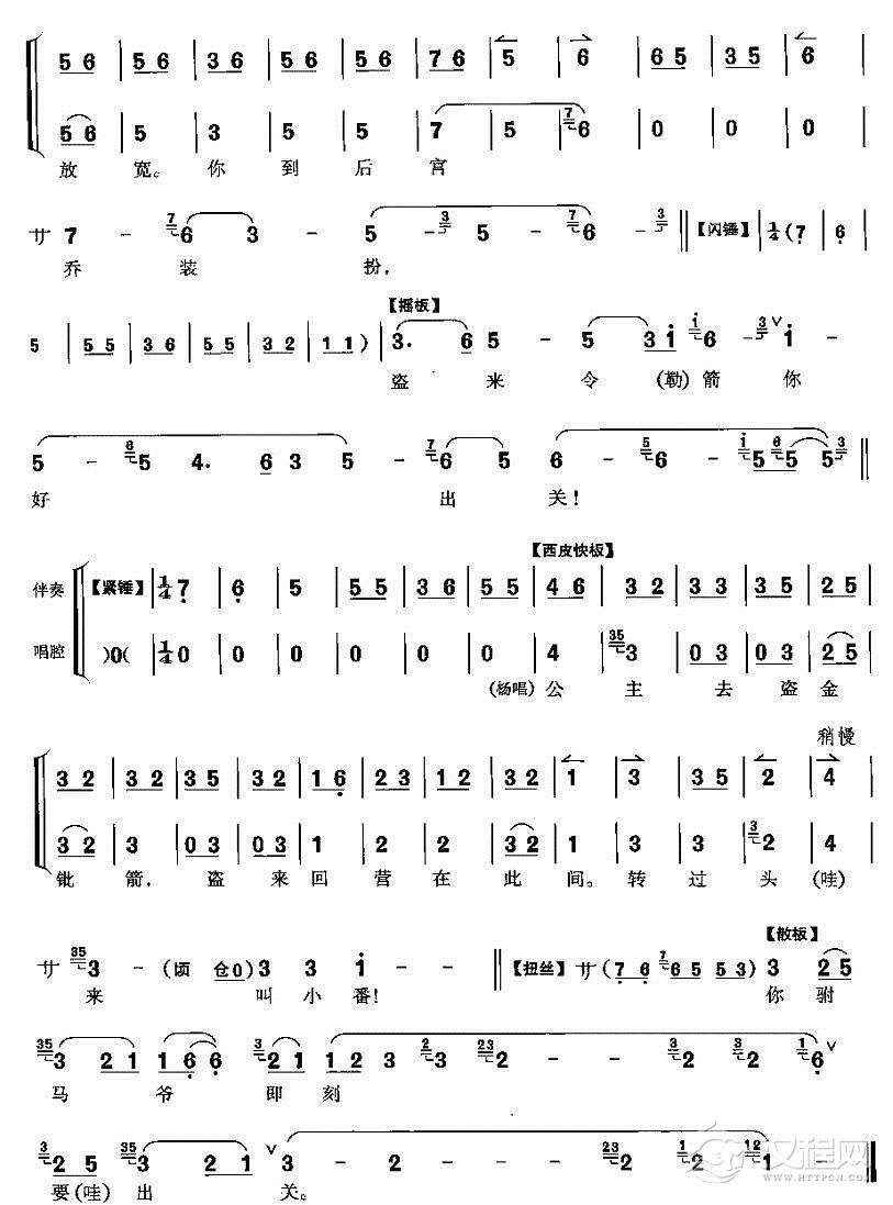戏曲曲谱催马再次曹府往(《灞陵桥》关羽唱段)