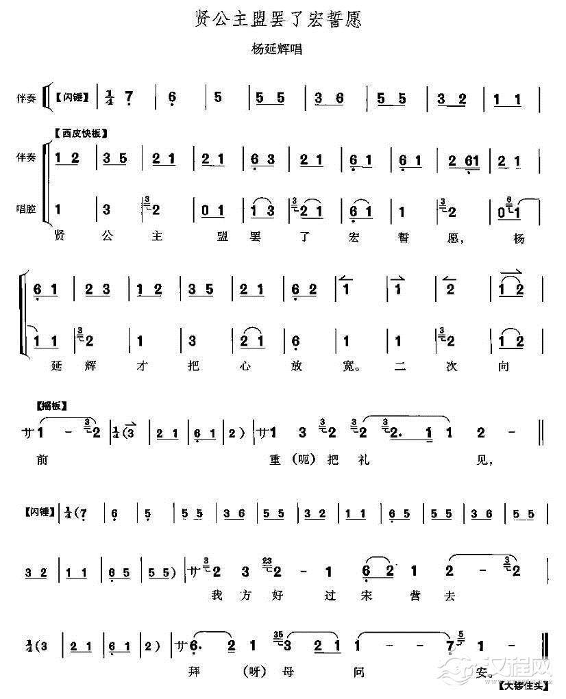 戏曲曲谱杨延辉坐宫院自思自叹(《四郎探母》杨延辉唱段)