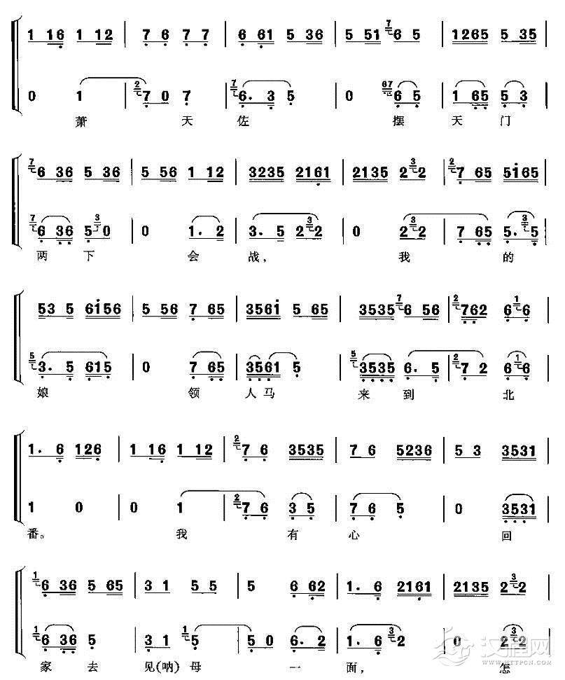 戏曲曲谱我在南来你在番(《四郎探母》杨延辉唱段)
