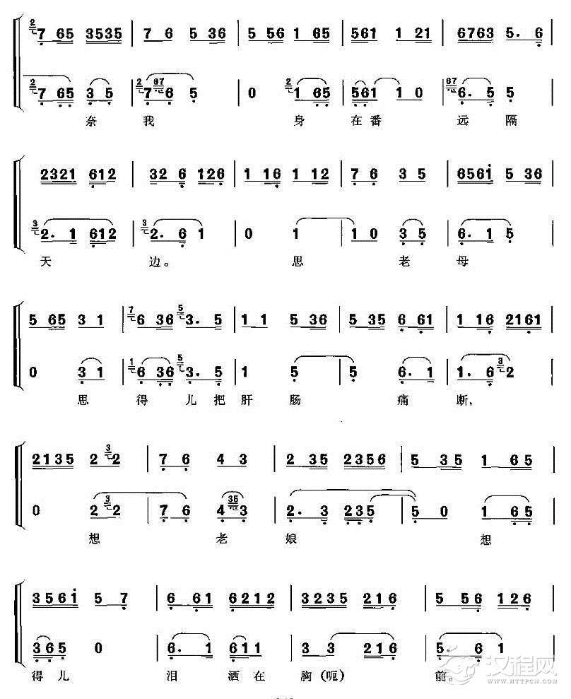 戏曲曲谱未开言不由人泪流满面(《四郎探母》杨延辉唱段)