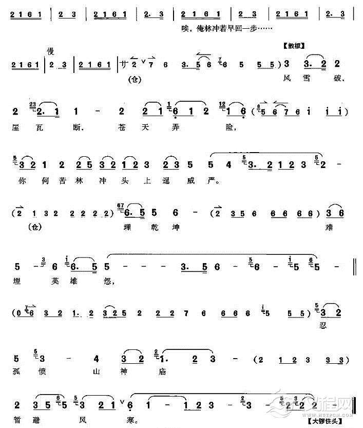戏曲曲谱一路上无情棍实难再忍(《野猪林》林冲唱段)