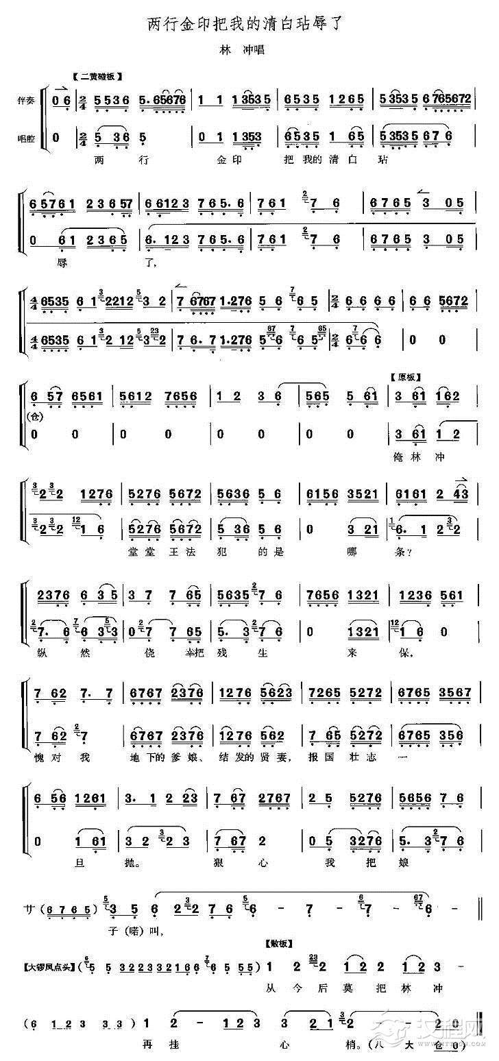 戏曲曲谱八十棍打地我冲天愤恨(《野猪林》林冲唱段)