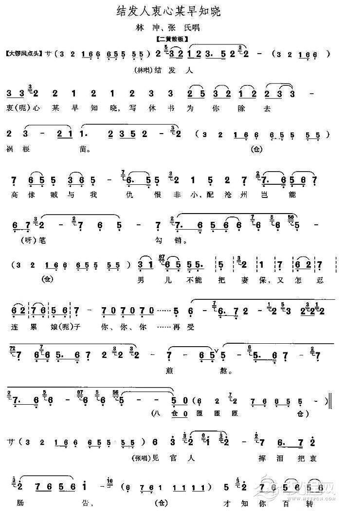 戏曲曲谱八十棍打地我冲天愤恨(《野猪林》林冲唱段)