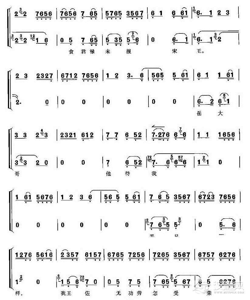 戏曲曲谱割地输金做儿臣(《满江红》岳飞唱段)