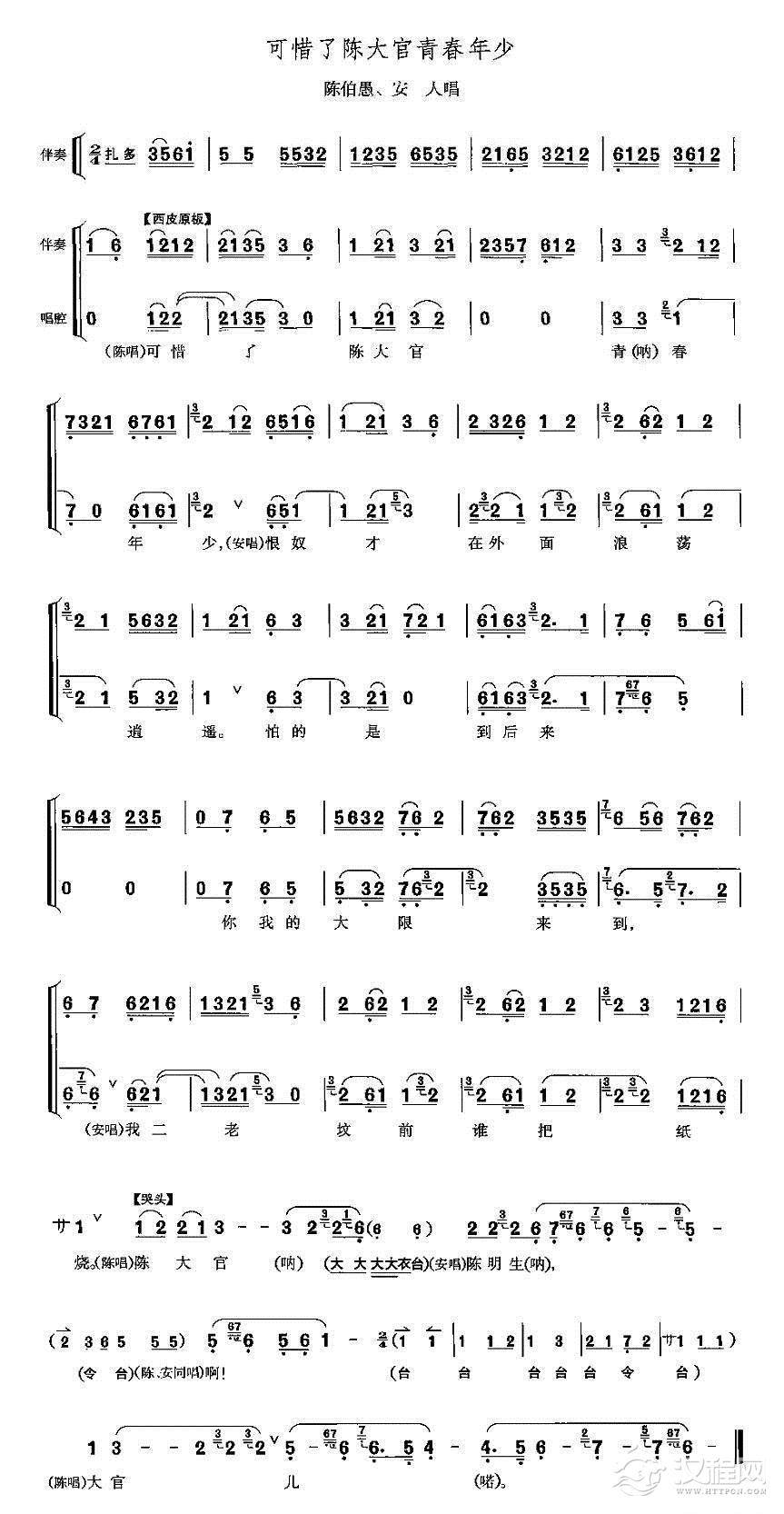 戏曲曲谱艳阳天气正清明(《打侄上坟》陈伯愚、安人唱段)
