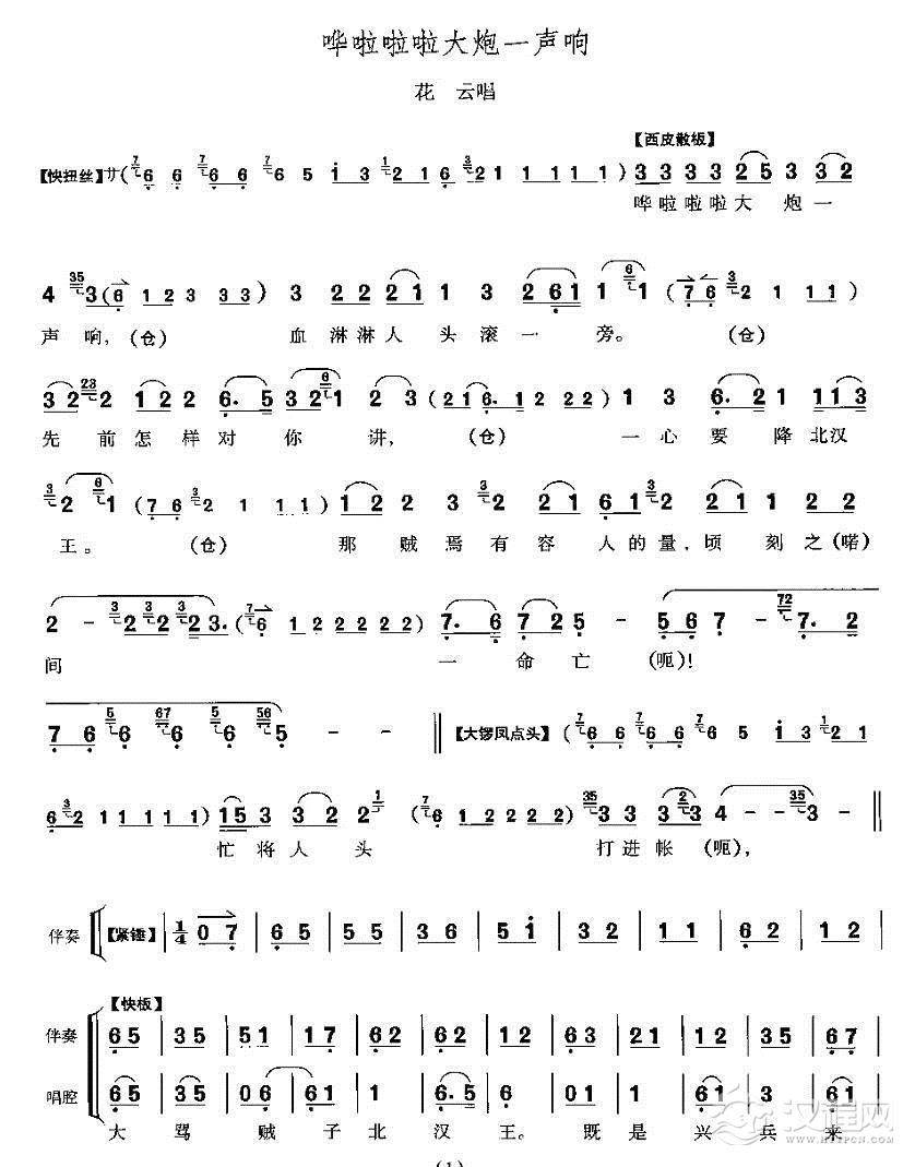 戏曲曲谱号炮一响惊天地(《战太平》花云唱段)