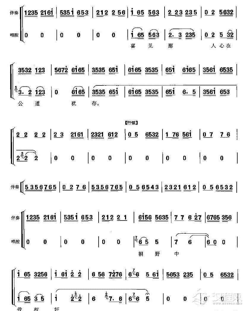 戏曲曲谱汉室中卫律声名不正(《断臂说书》王佐唱段)