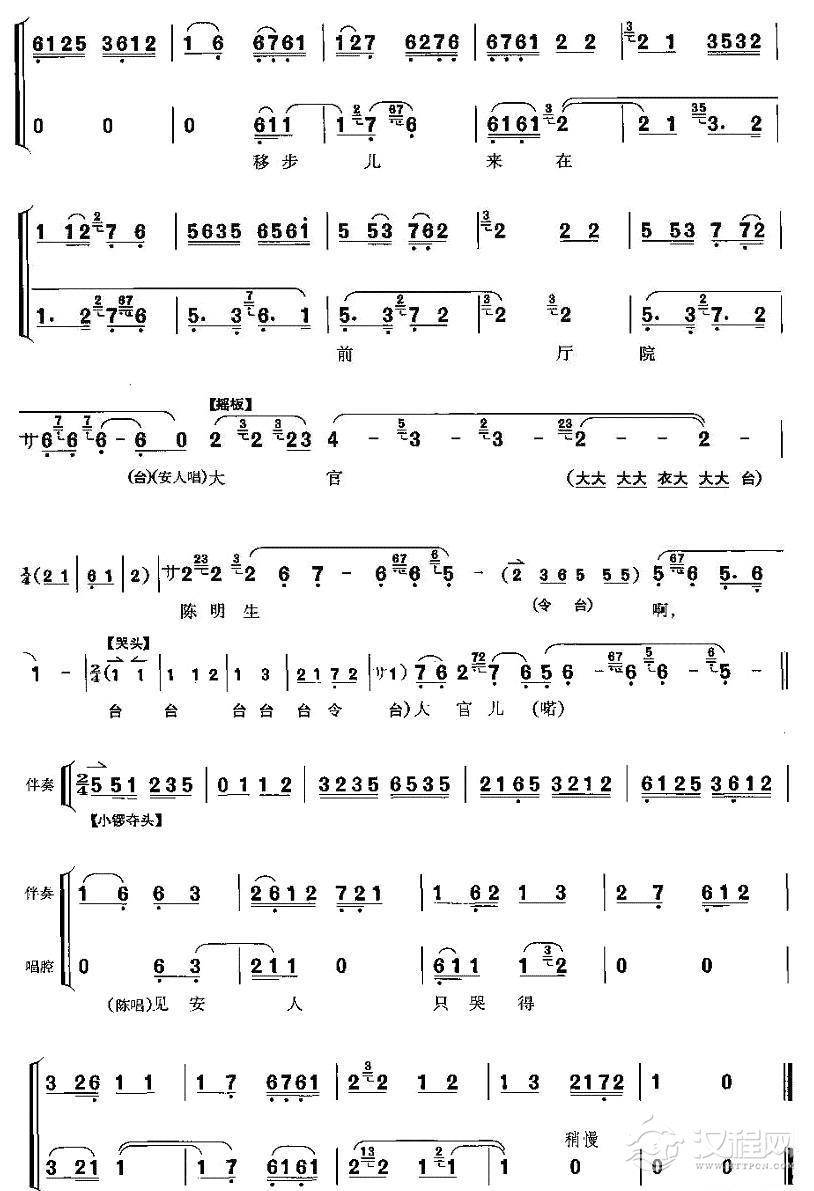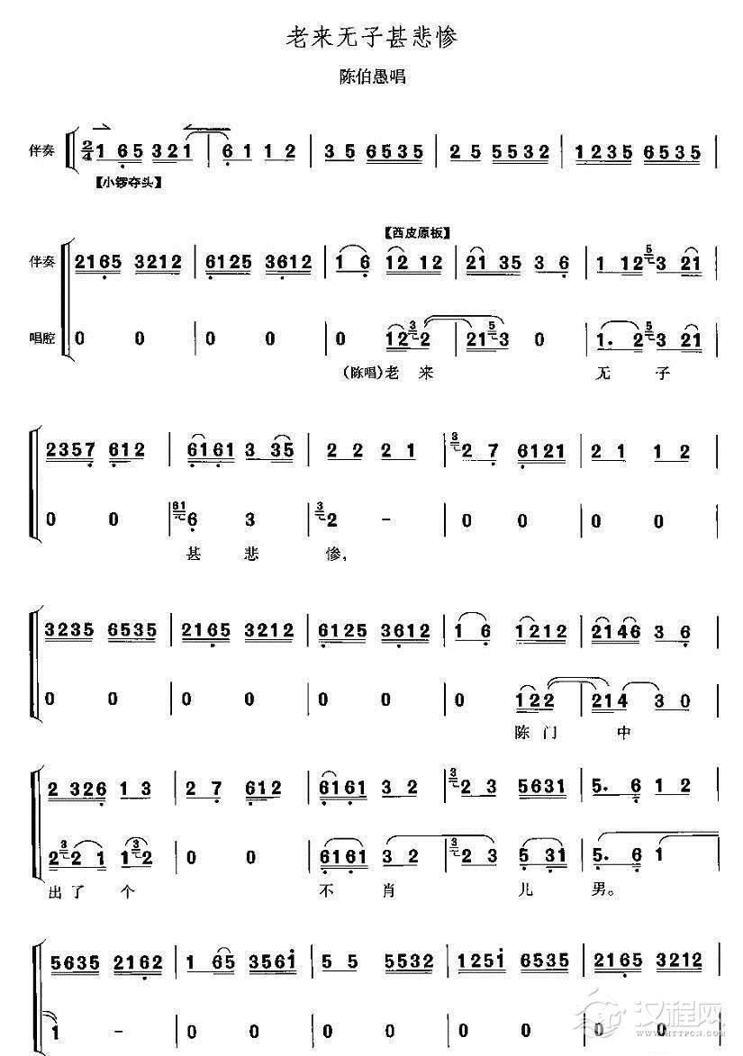 戏曲曲谱可惜了陈大官青春年少(《打侄上坟》陈伯愚、安人唱段)
