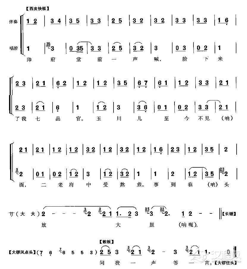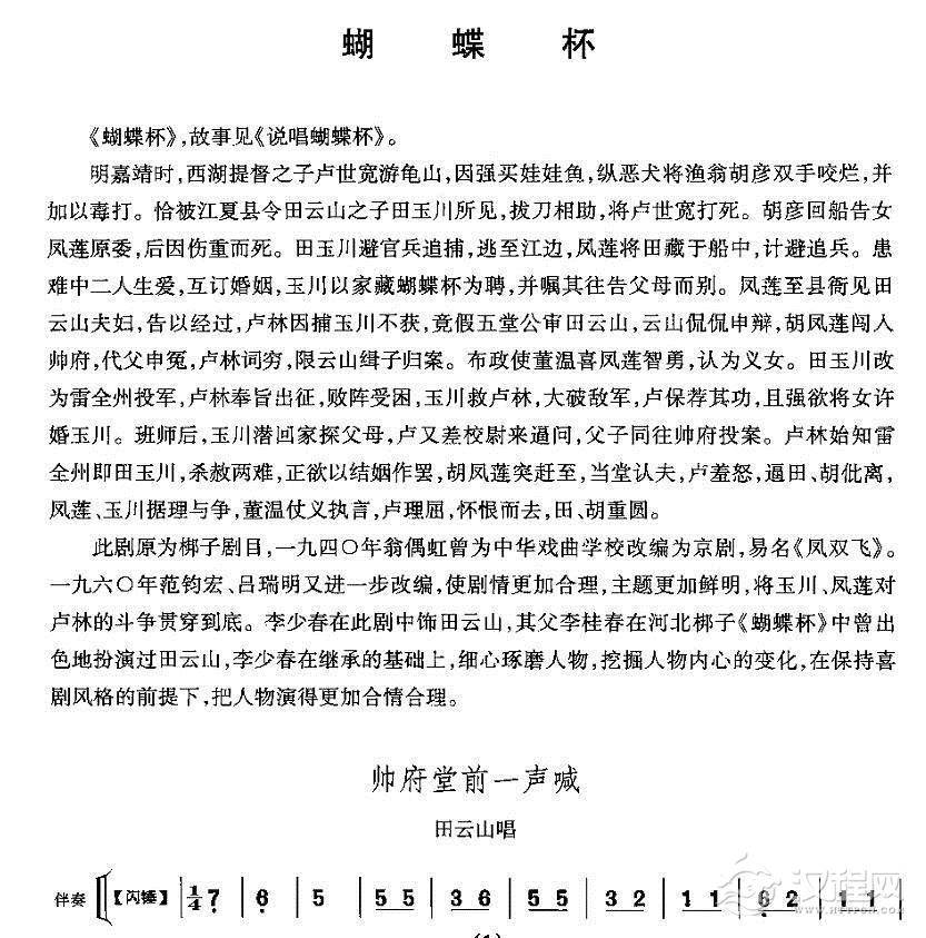戏曲曲谱堂堂总督官高爵显(《蝴蝶杯》田云山唱段)