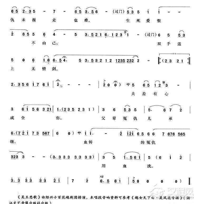 戏曲曲谱一剑别了千年情(《寒情》荆轲唱段)