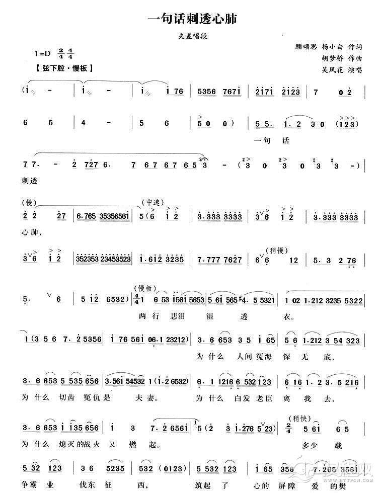 戏曲曲谱一品锅一品大员享荣禄(《杨乃武平冤记》扬菊贞唱段)