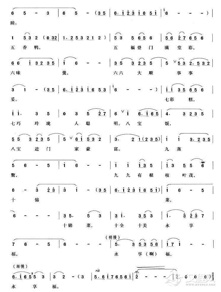 戏曲曲谱请姑娘放心喝下这暖肚汤(《五女拜寿》邹士龙唱段)