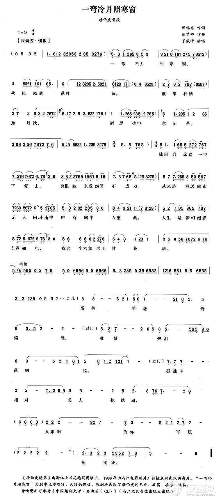 戏曲曲谱一品锅一品大员享荣禄(《杨乃武平冤记》扬菊贞唱段)