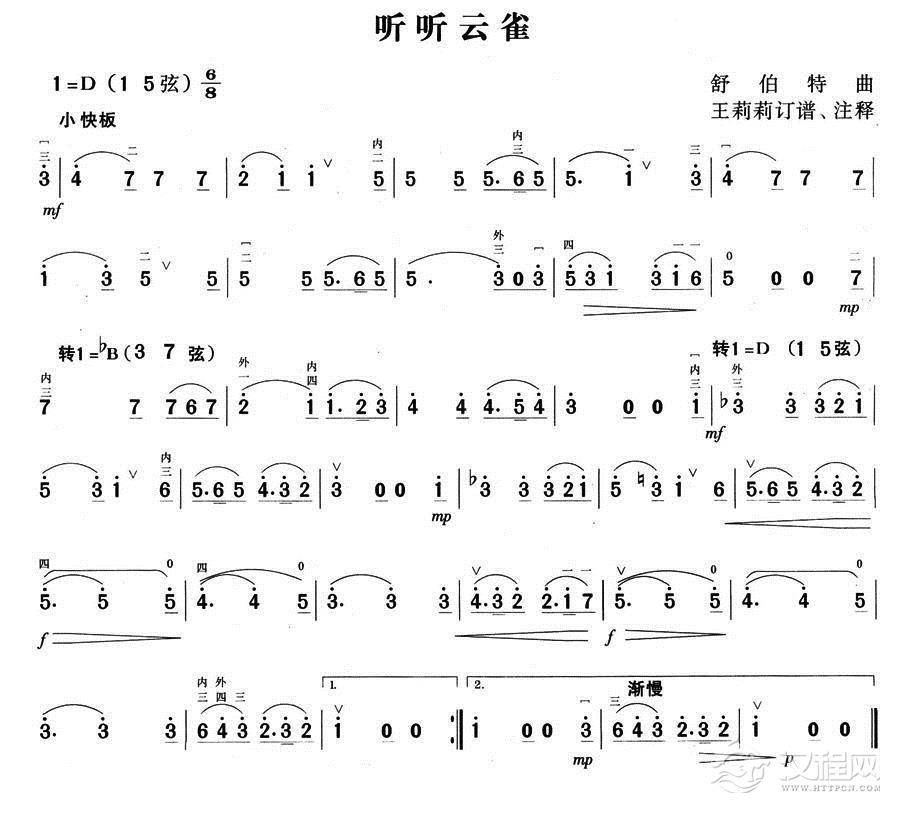 曲谱大全开花调变奏曲 民乐类 扬琴