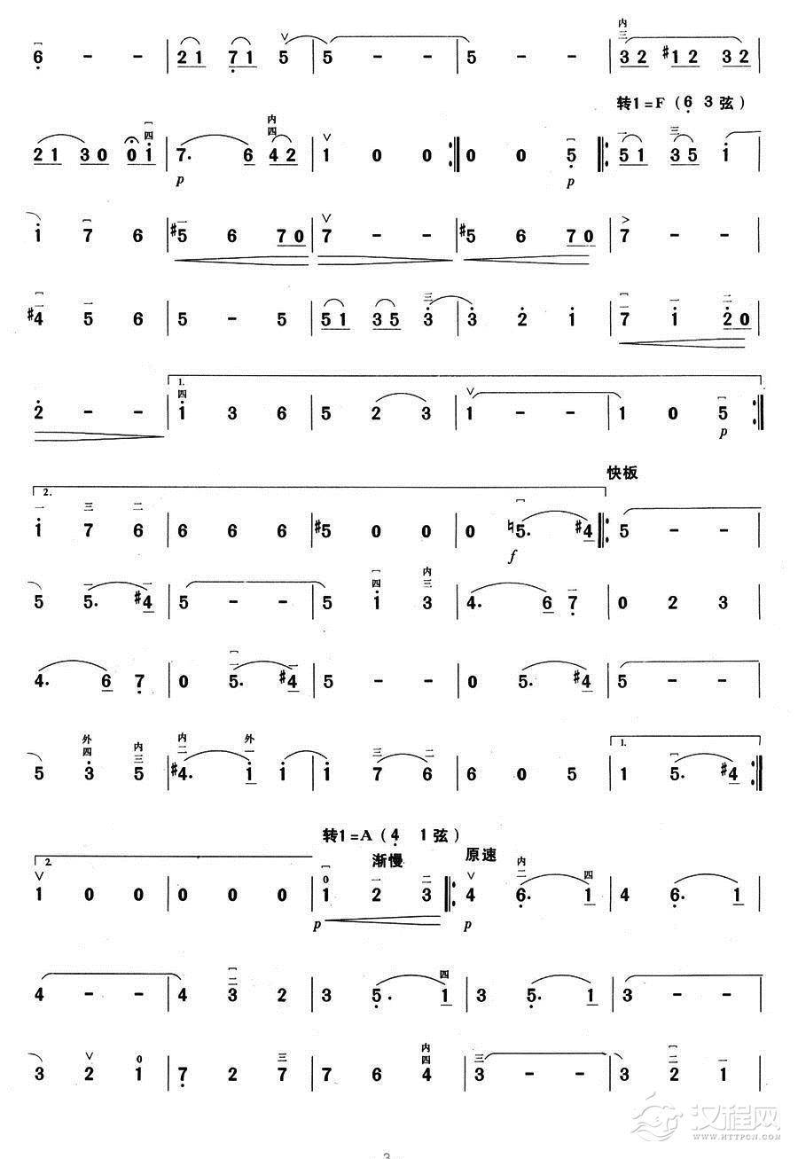 曲谱大全《翻身的日子》民乐合奏琵琶分谱2