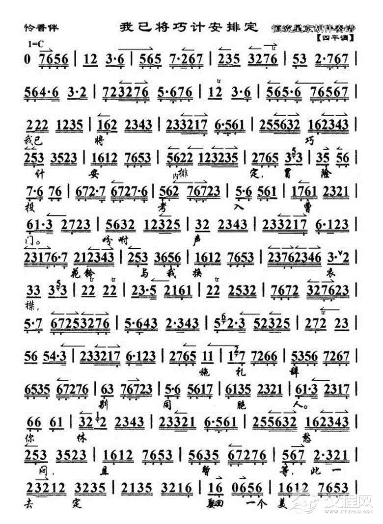戏曲曲谱明月升银光似水泻芳园(《汉宫怨》许平君唱段)