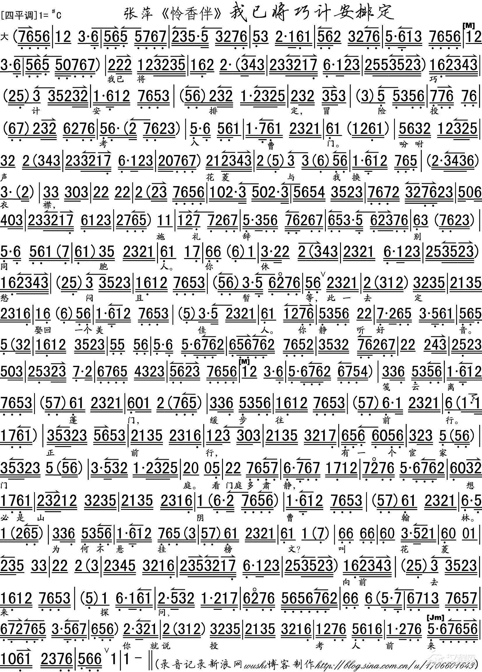 戏曲曲谱有美人兮见之不忘(《西厢记》张生唱段)