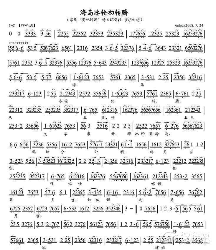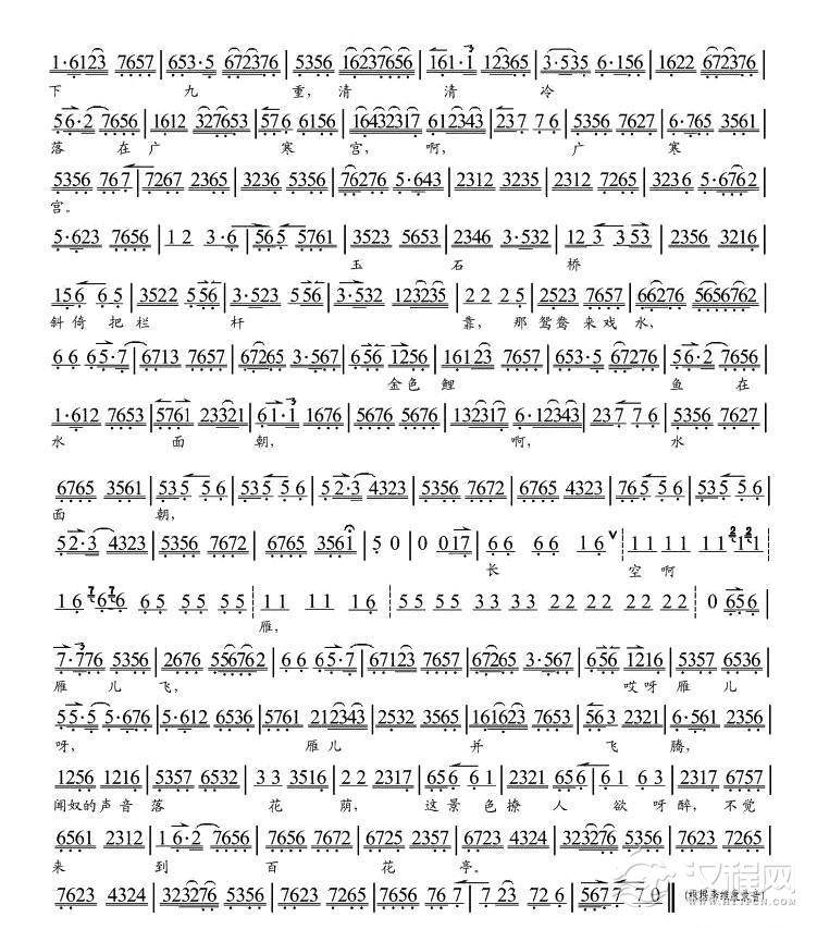 戏曲曲谱明月升银光似水泻芳园(《汉宫怨》许平君唱段)