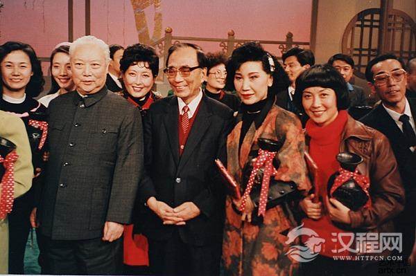 1991年全国电视京剧大奖赛中年组决赛颁奖晚会,前排左起:张君秋、赵寻、薛亚萍、龚苏萍