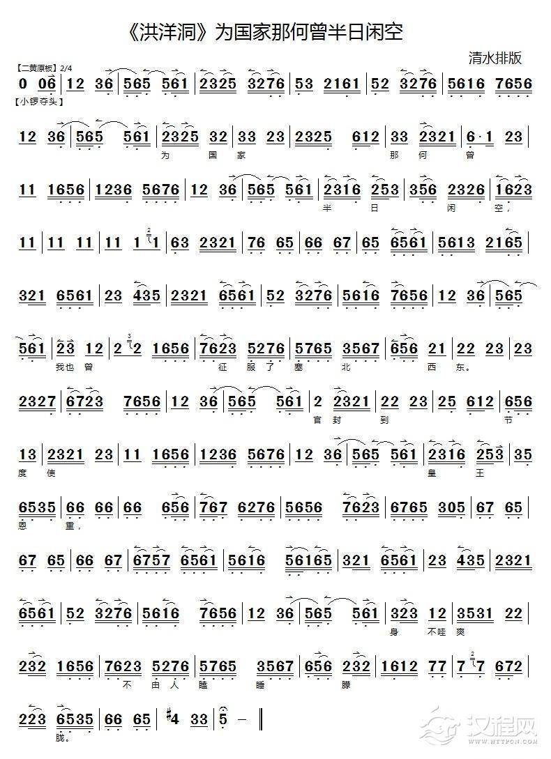 戏曲曲谱叹杨家投宋主心血用尽(《洪洋洞》选段)