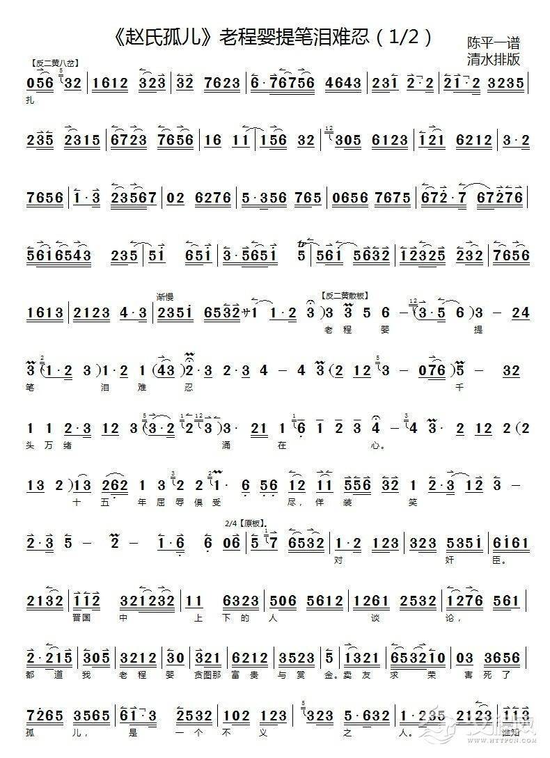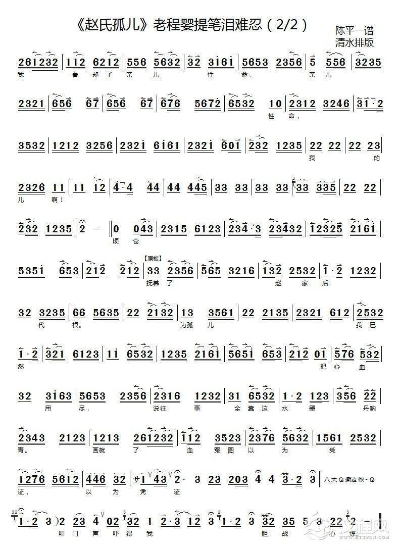 戏曲曲谱娘子不必太烈性((《搜孤救孤》程婴唱段)