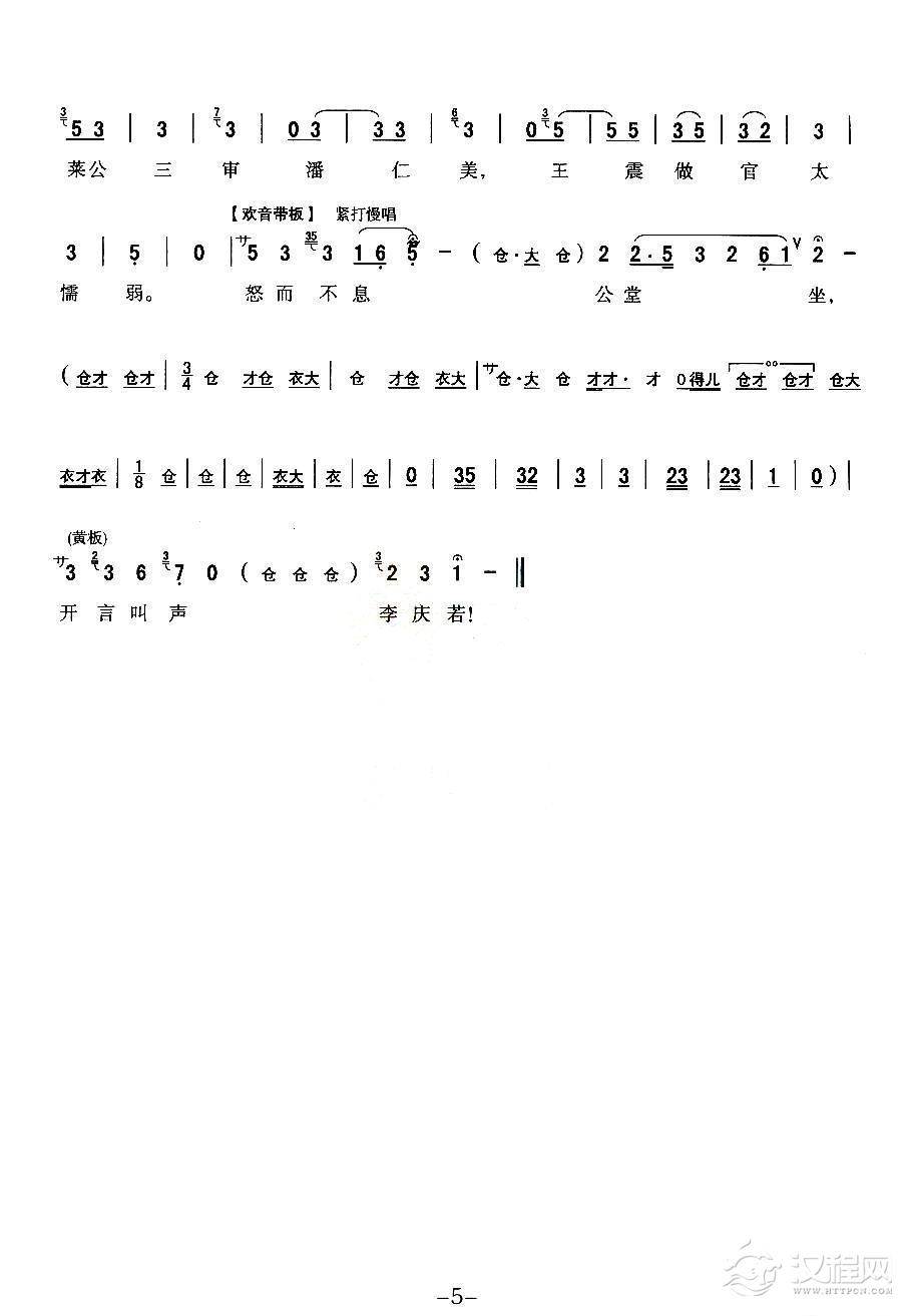 戏曲曲谱耳听的悲声惨心中如捣(《锁麟囊》选段)