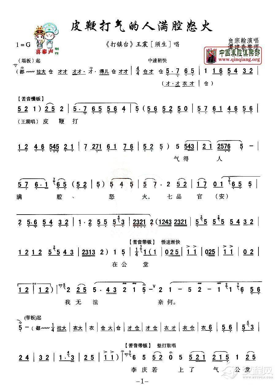 戏曲曲谱[秦腔] 赵五娘捧糠碗珠泪滚滚(《赵五娘吃糠》选段、冯艳丽演唱版)