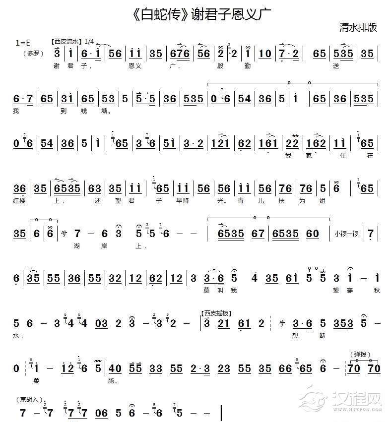 戏曲曲谱雨过天晴湖光如洗(《白蛇传》选段)