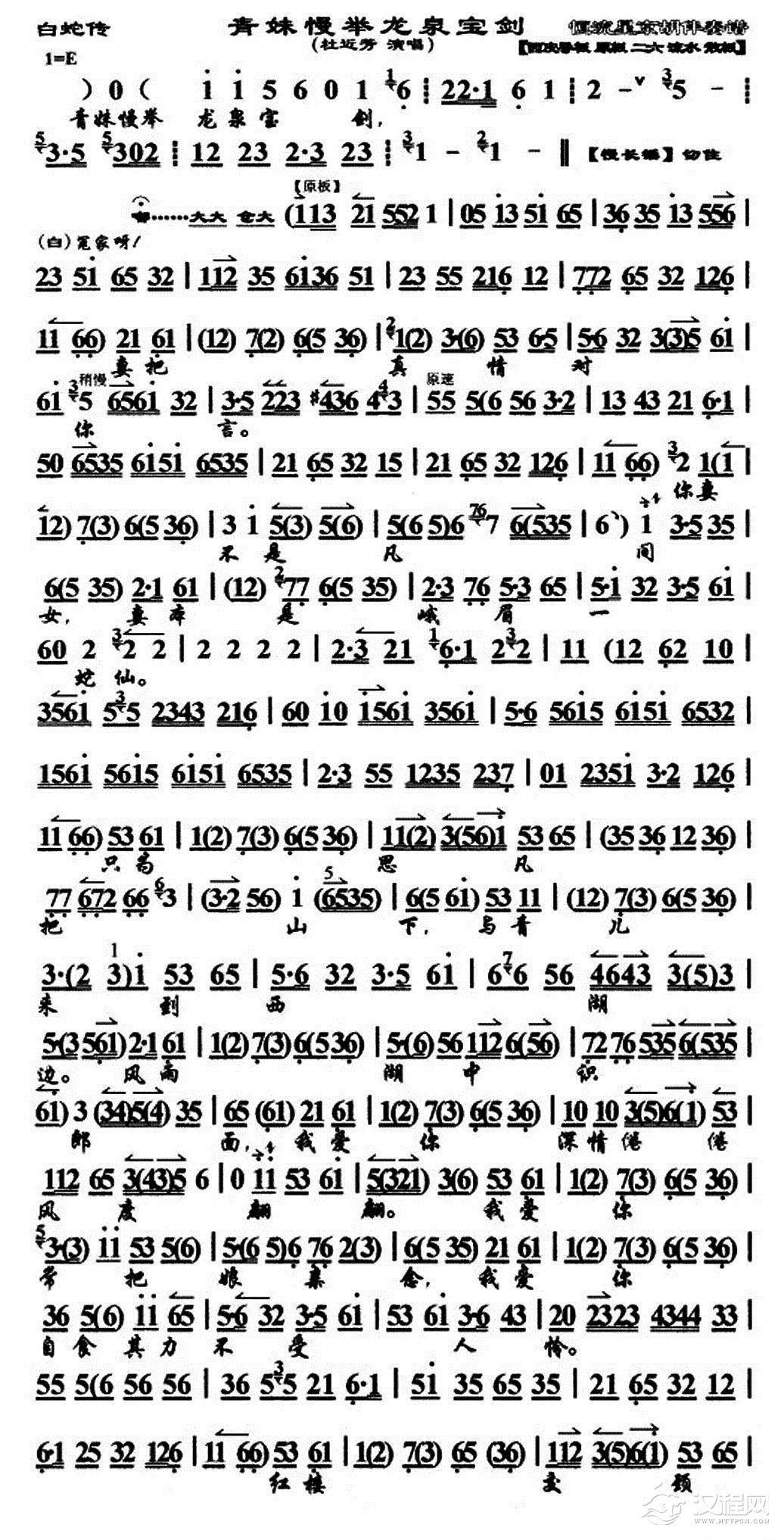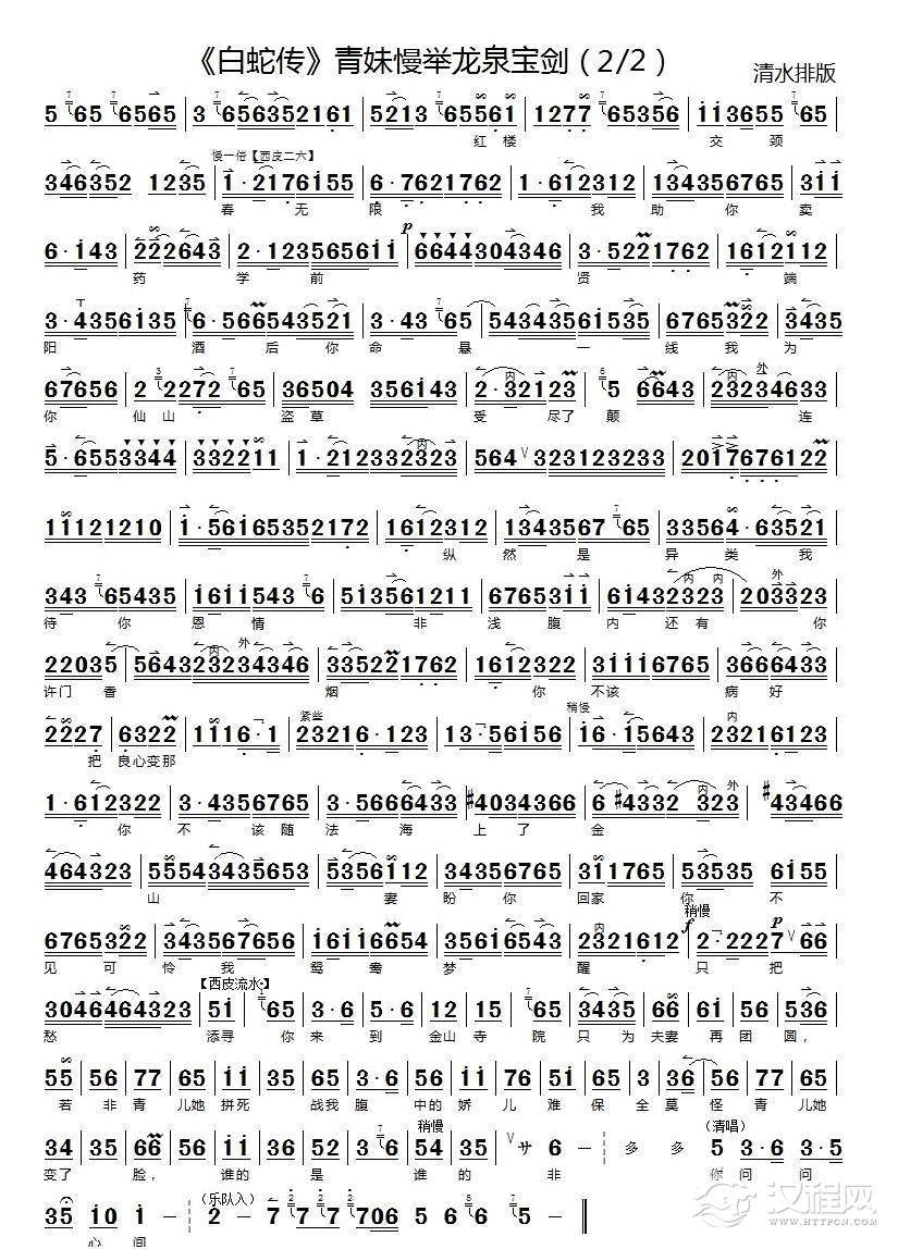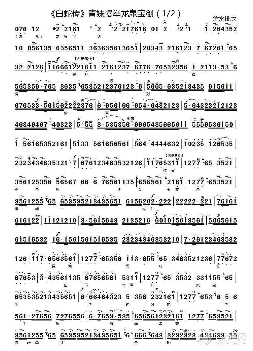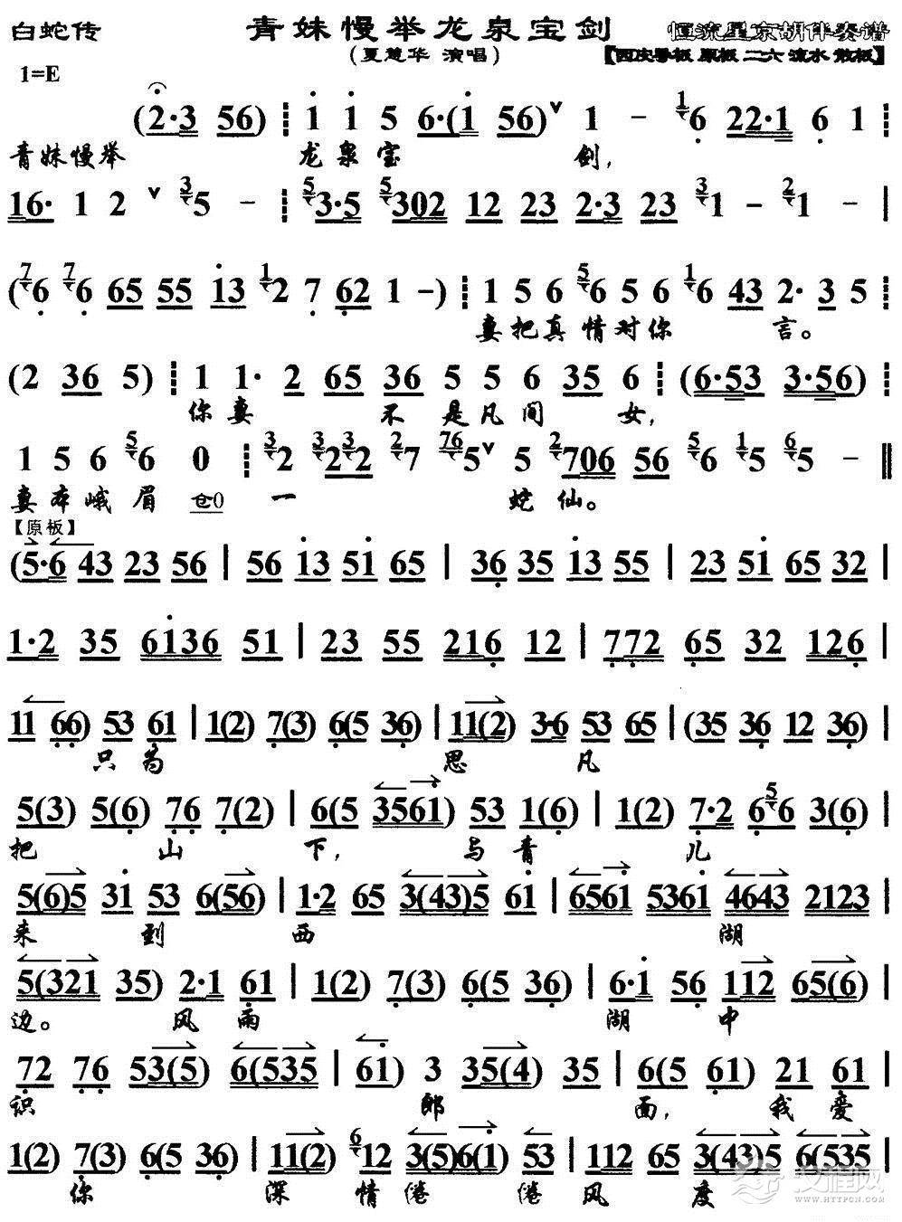 戏曲曲谱雨过天晴湖光如洗(《白蛇传》选段)