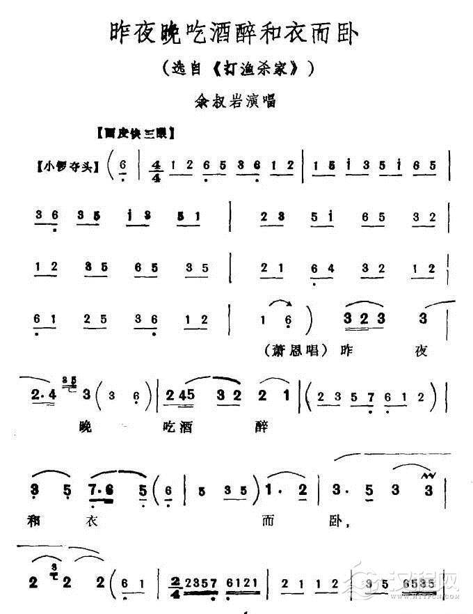 戏曲曲谱自从窦娥生下地(《窦娥冤》选段)