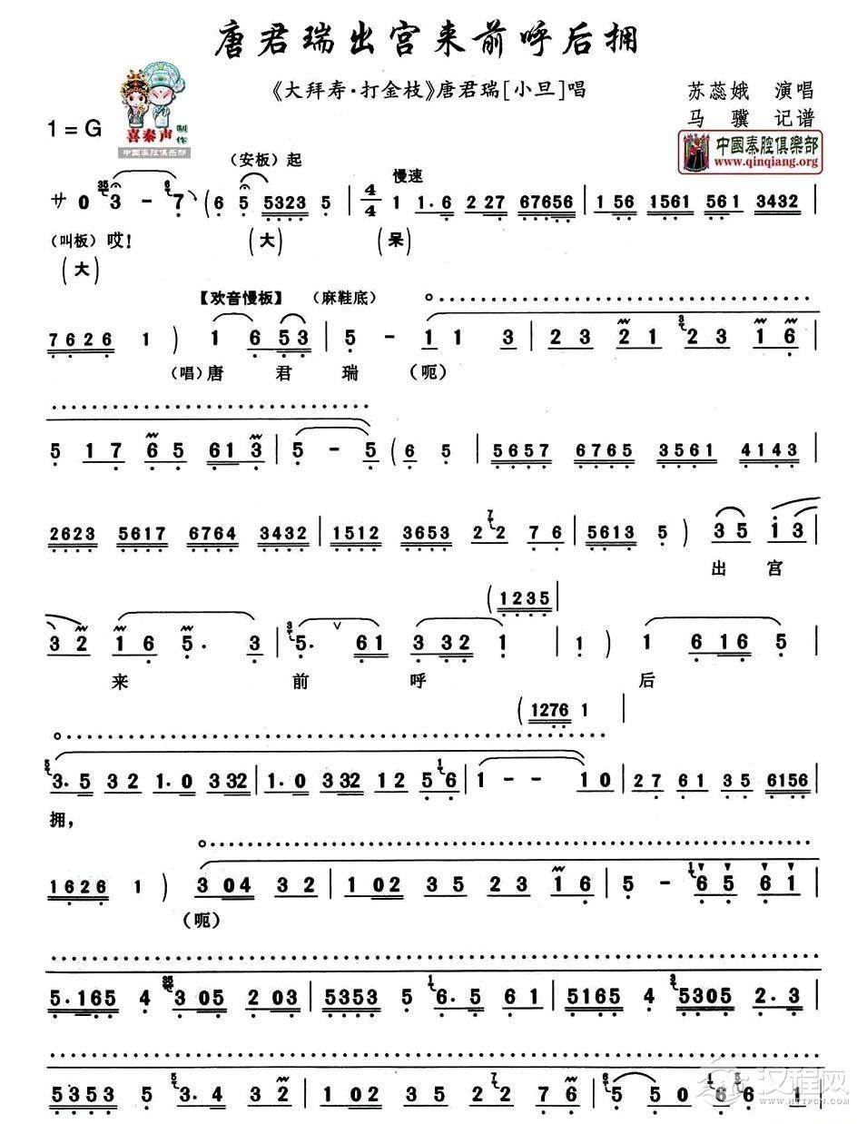 戏曲曲谱[秦腔] 赵五娘捧糠碗珠泪滚滚(《赵五娘吃糠》选段、冯艳丽演唱版)