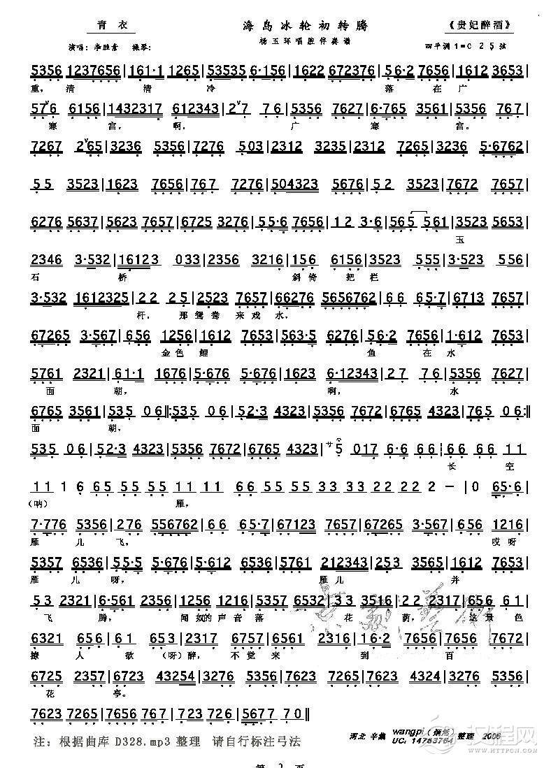 戏曲曲谱海岛冰轮初转腾(京剧《贵妃醉酒》选段、琴谱)