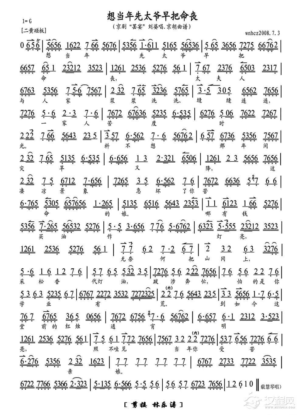 戏曲曲谱宋公明打坐在乌龙院(京剧《乌龙院》选段、琴谱)