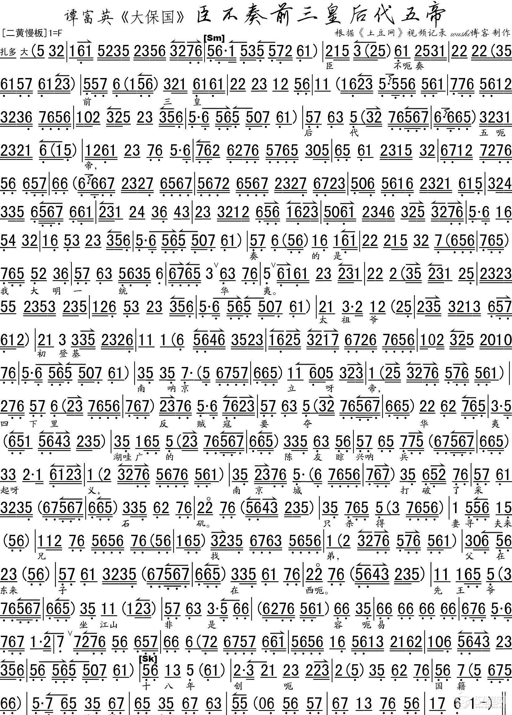 戏曲曲谱龙车凤辇进皇城(《打龙袍》李太后唱段、琴谱)