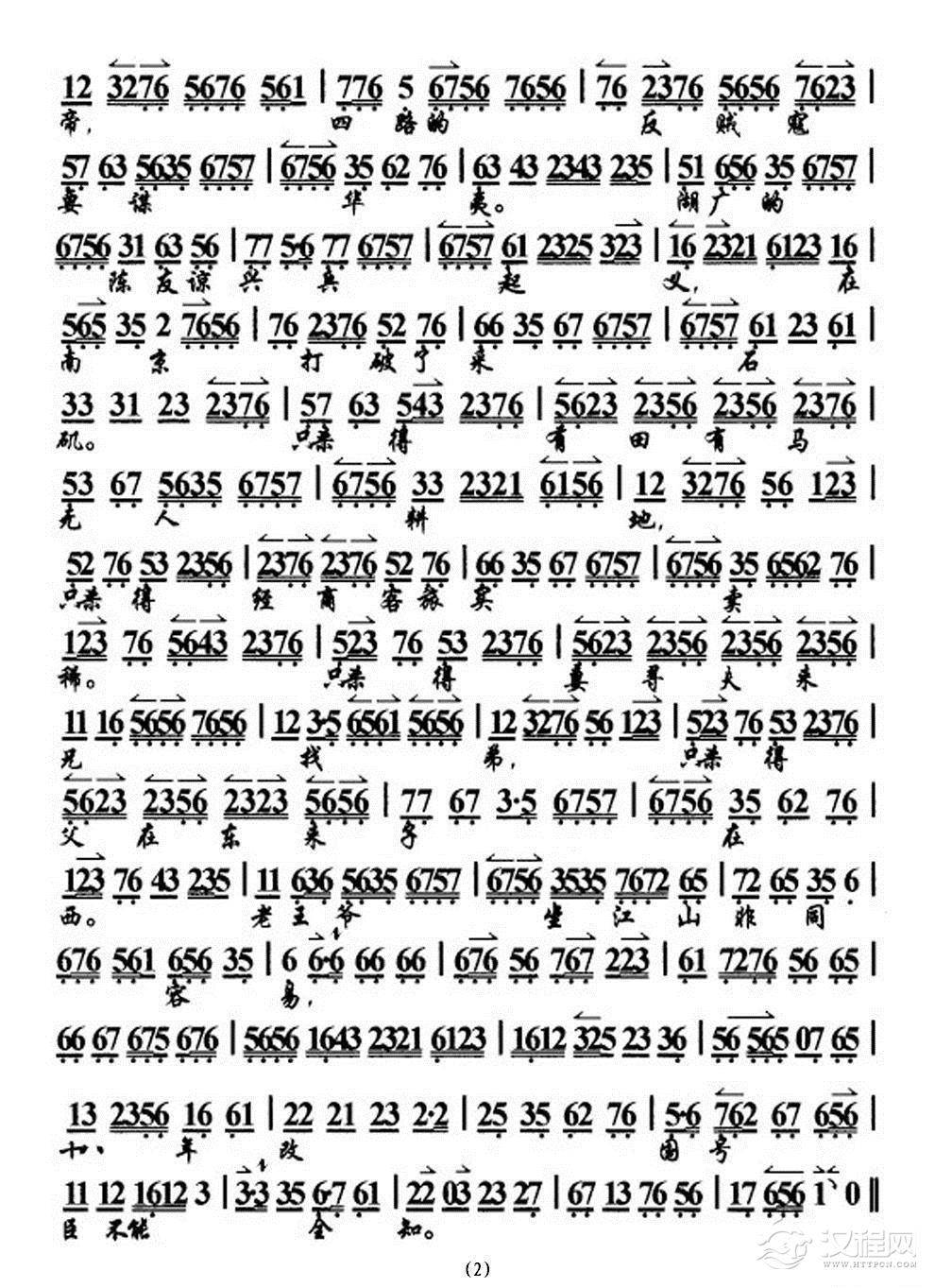 戏曲曲谱汉高皇路过芒砀山(《大探二·大保国》选段、琴谱)