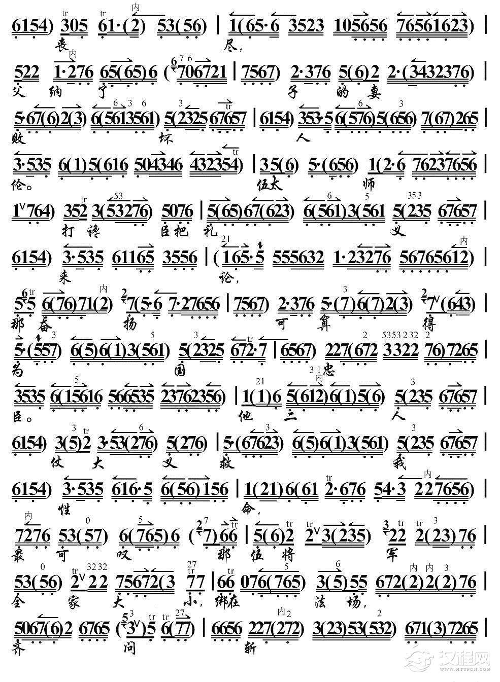 戏曲曲谱汉高皇路过芒砀山(《大探二·大保国》选段、琴谱)