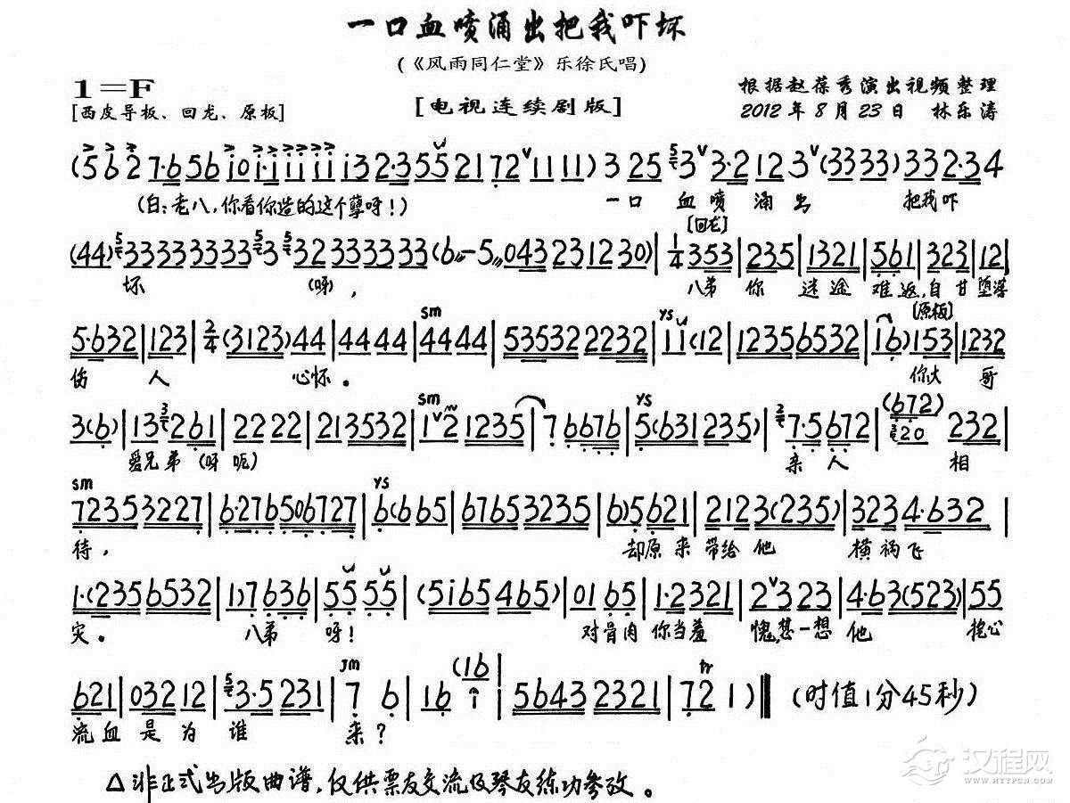 戏曲曲谱炎黄子孙宁折不弯(《风雨同仁堂》乐徐氏唱段、琴谱)