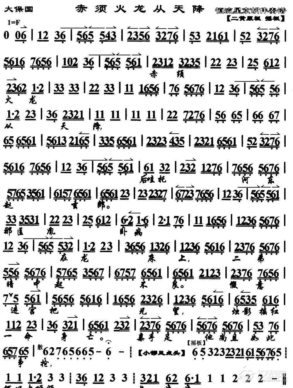 戏曲曲谱汉高皇路过芒砀山(《大探二·大保国》选段、琴谱)