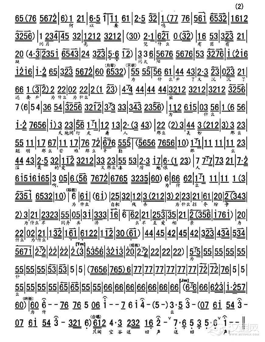 戏曲曲谱我的名字叫流浪(《情殇钟楼》选段、琴谱)