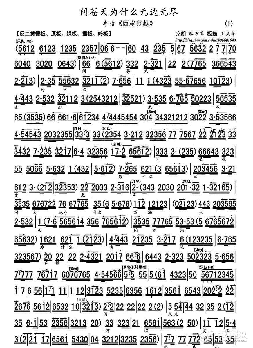 戏曲曲谱西施归越·问苍天(《西施归越》选段、琴谱)