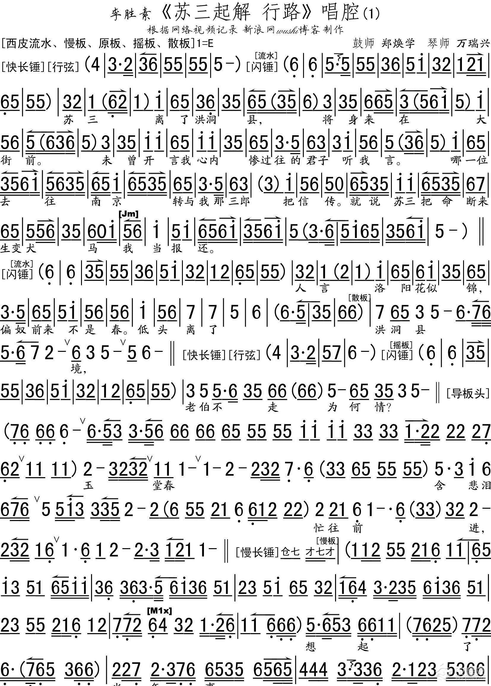 戏曲曲谱宋王爷坐江山风调雨顺(《太君辞朝》选段、琴谱)