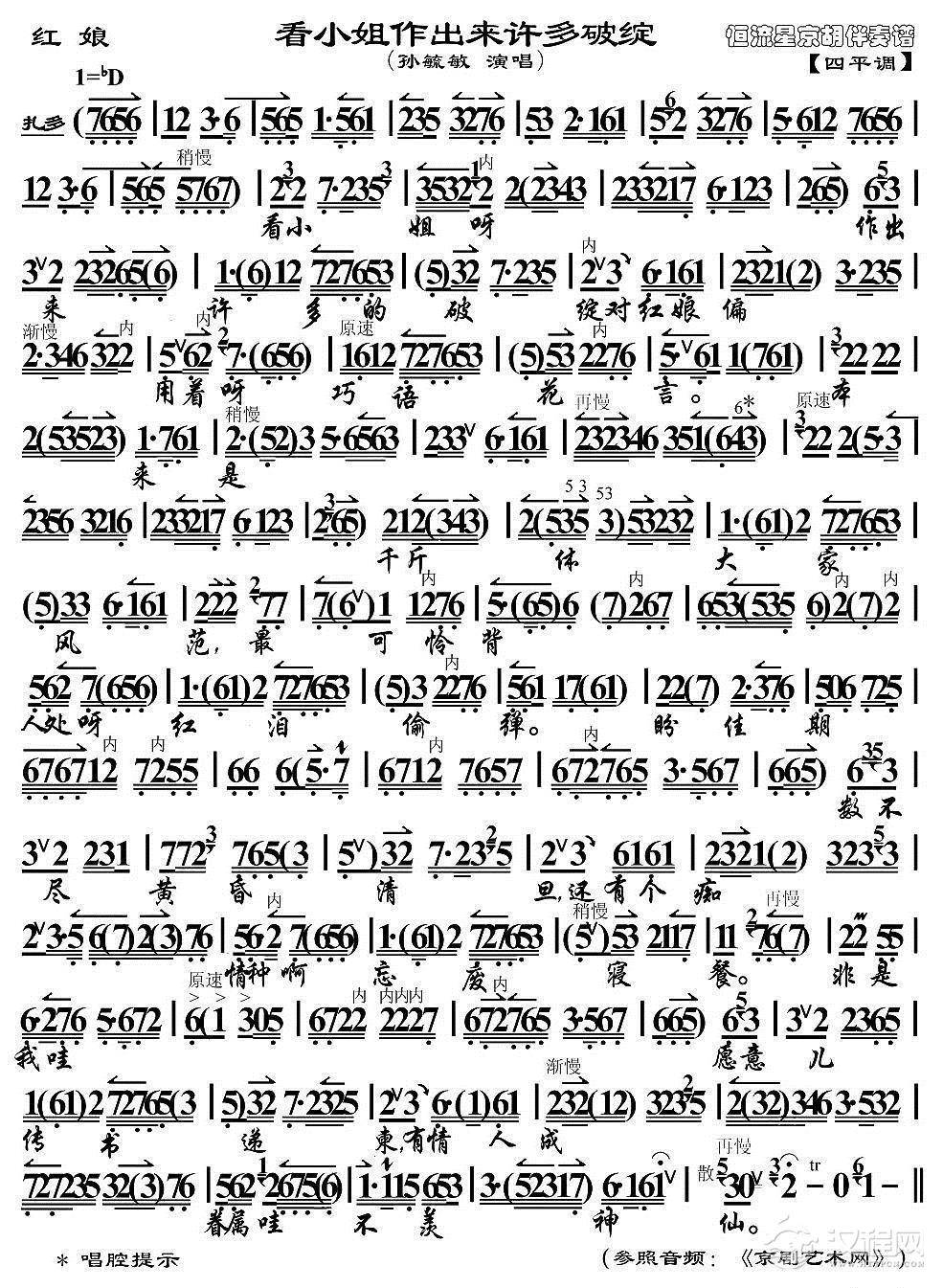 戏曲曲谱孙毓敏《红娘》西皮唱段(琴谱)