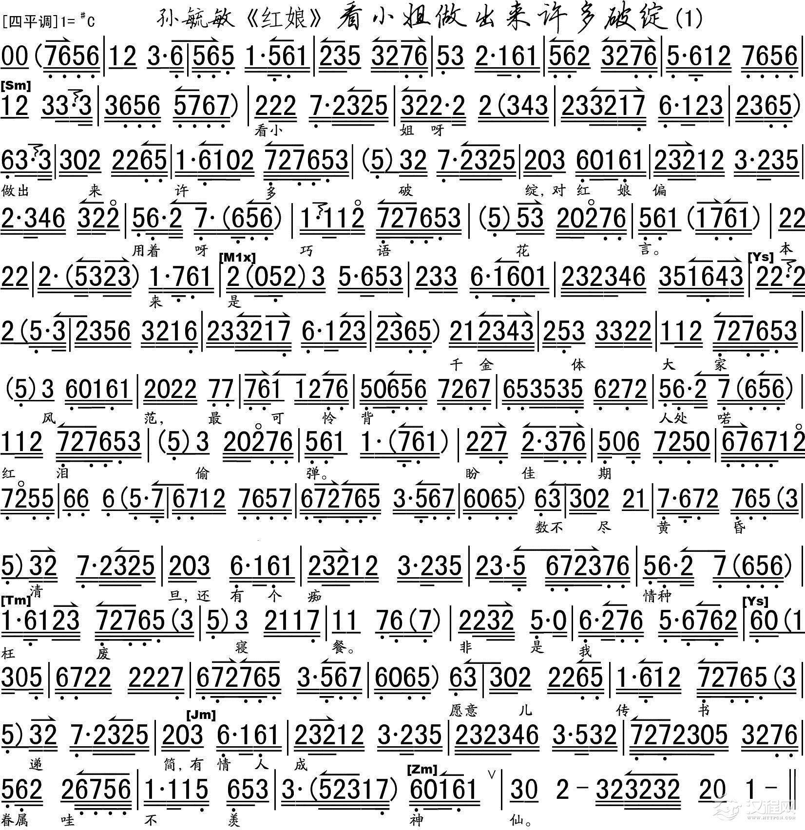 戏曲曲谱小姐你多风采(《红娘》选段、琴谱)