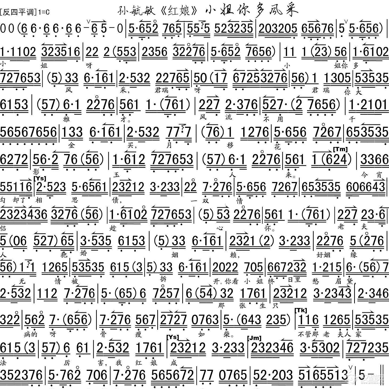 戏曲曲谱看小姐红晕上粉面(《红娘》选段、琴谱)