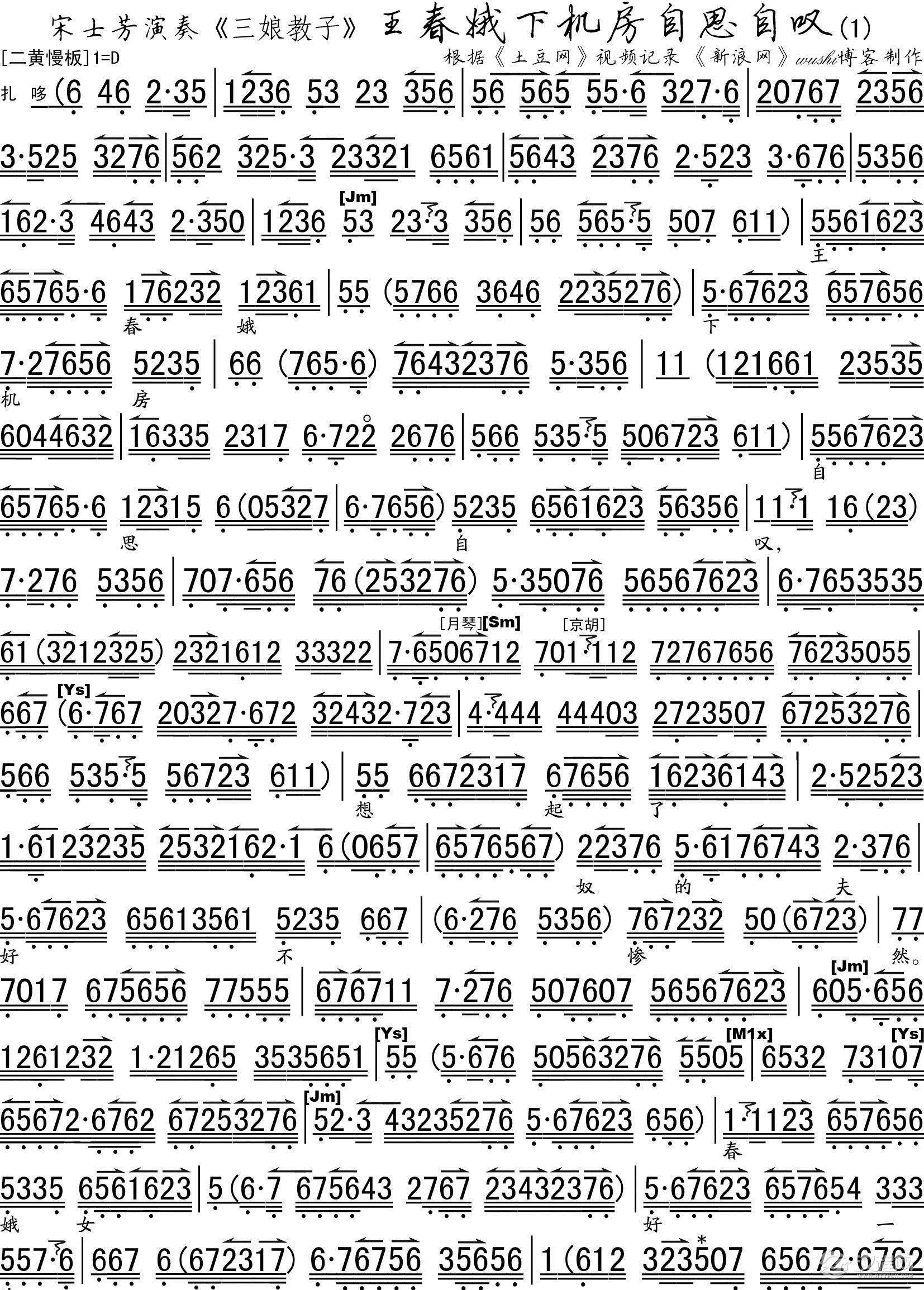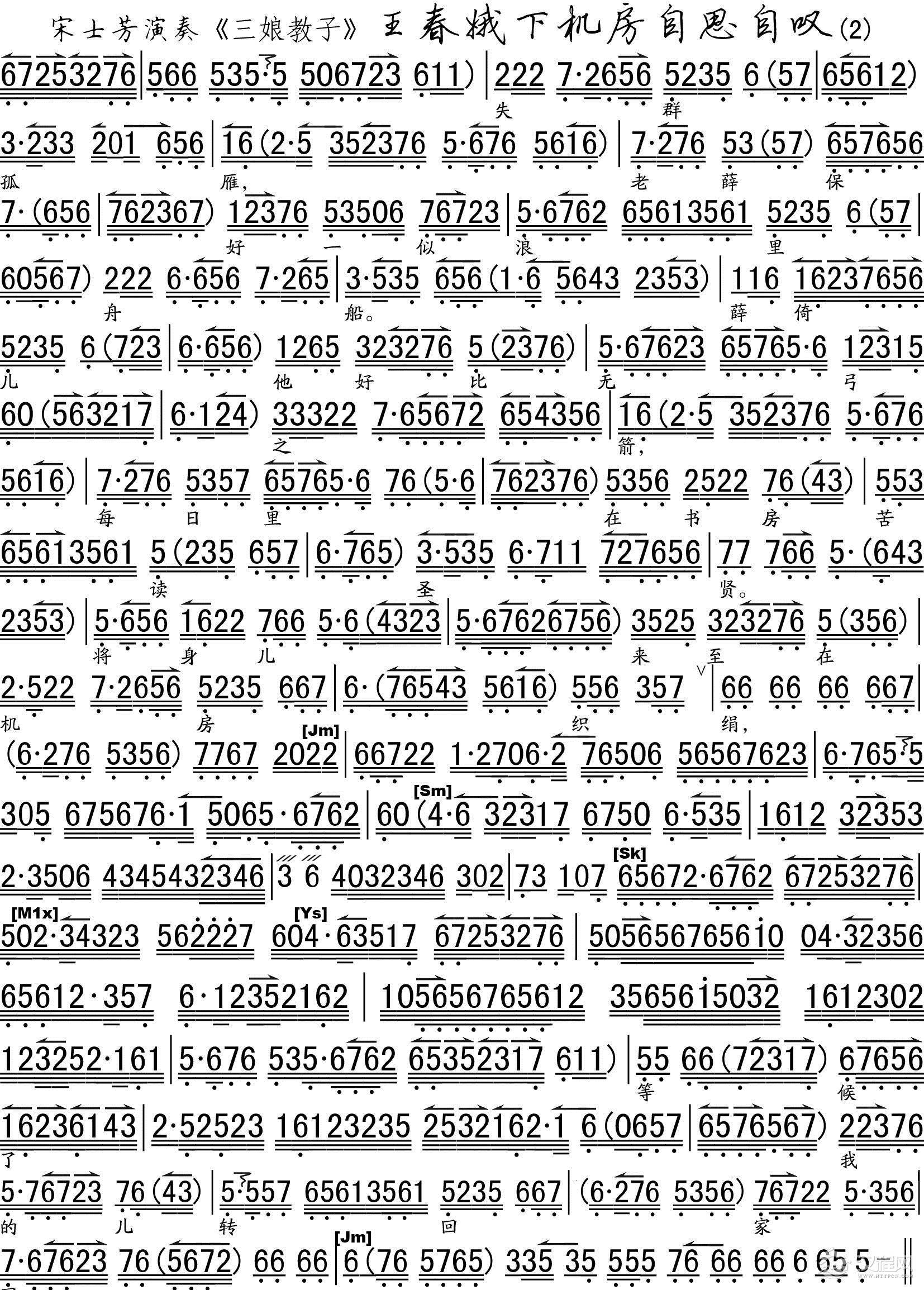 戏曲曲谱[秦腔] 赵五娘端穅婉珠泪滚滚(《赵五娘吃糠》选段)